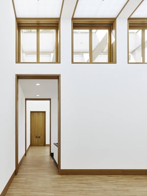 In den Türdurchgängen sowie in den Nischen wurden Schwellen eingearbeitet, so dass jeder einzelne Bezugspunkt der Türen usw. durch den Schmelzdrahtverschluss des Linoleums aufgenommen wurde.