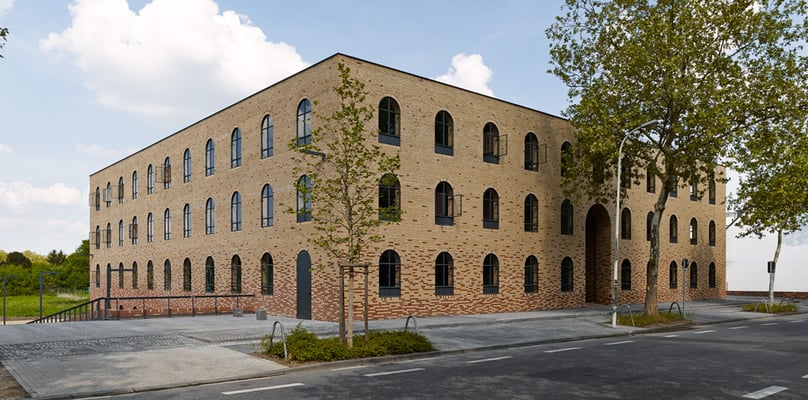 Ist der Blick erst geschärft, sieht man Schröders zweiten Siegerentwurf mit anderen Augen: das Studentenwohnheim Rom.Hof an der Dransdorfer Siemensstraße 144 – einem nicht gerade durch architektonische Meisterleistungen auffallenden Viertel – hat die Anmutung eines Florentiner Palazzos mit markiger Rustika und Reihen von Rundbogenfenstern. Wieder sind es an mittelalterliche Kreuzgänge erinnernde Höfe und traumhaft gelungene, geradezu klösterlich strenge Gemeinschaftsräume, die den Bau rhythmisieren. Die einzelnen funktionalen und wohnlichen Studiolos für die Bewohner gruppieren sich um die Höfe. Ein Meisterwerk – und für junge Menschen der geeignete Ort, ein Gefühl für gute Architektur zu bekommen.